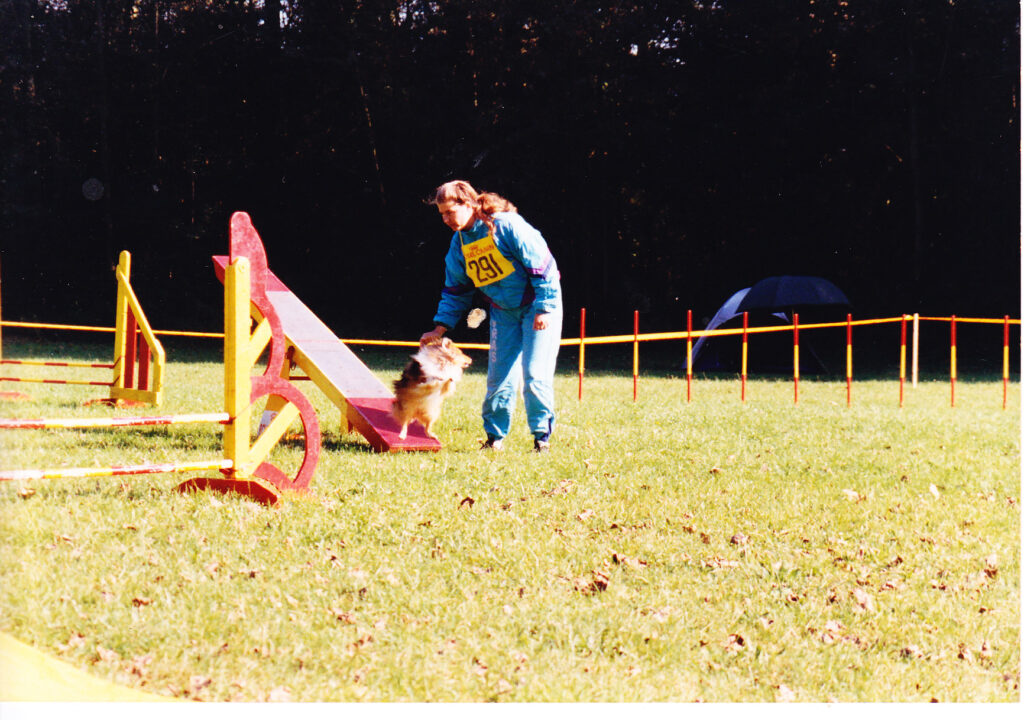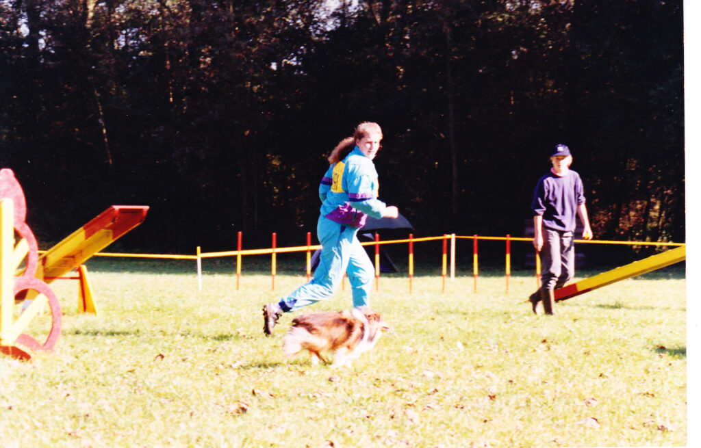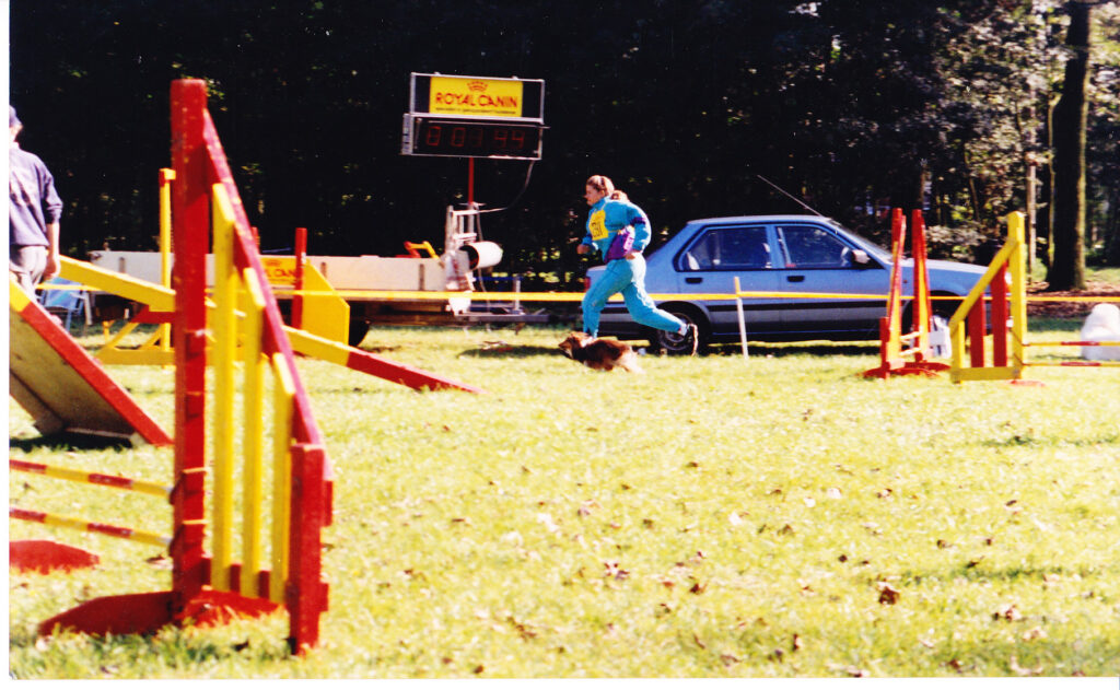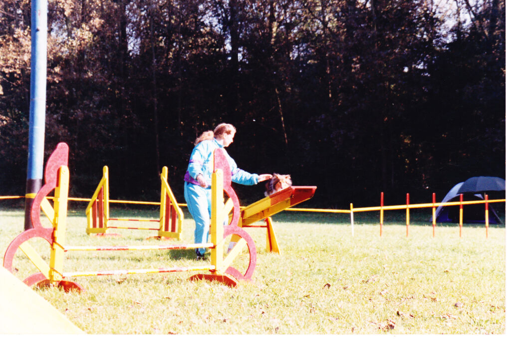In 1992 begonnen we met behendigheids training bij VRAS. Het ging al zo snel leuk dat we al wedstrijden meededen. Eerst was het nog niets, maar ik had de smaak te pakken en toen Zoë doorhad dat ik het ook leuk vond om iets te winnen ging ze ook haar best doen. Een speeltje vond ze niets maar een westrijd!