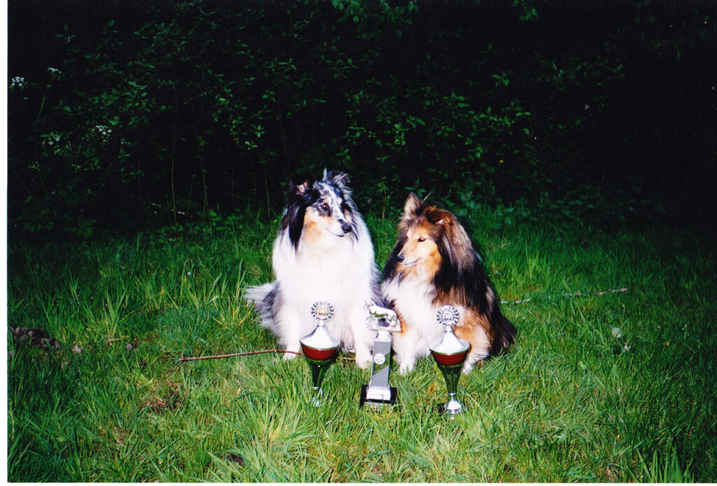Thyrza kwam uit Friesland. Ik zag een advertentie in het Sheltie blad en een telefoontje was snel gedaan. Ik ben zelfs nog een keer helemaal naar Zwaagwesteinde gereden, om een keuze te maken. Dit keer werd het een blue merle teefje. Wat ik alleen niet had voorzien dat zij groter werd dan de andere kleinere shelties die ik al had.
